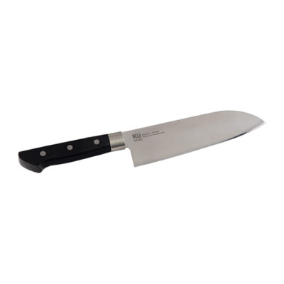 SANTOKU Là loại dao phổ biến nhất trong gia đình người Nhật. Là loại dao 3 trong một, có thể sử dụng để cắt thịt, cá và rau củ. Dao Santoku thường được mài sắc 2 mặt, bản dao rộng, lưỡi dao dài khoảng 15cm – 20cm. Hầu như trong tất cả gia đình đều sử dụng loại dao này. Vì sự phổ biến của nó, nên không chỉ ở Nhật, mà rất nhiều nơi sản xuất loại dao này.