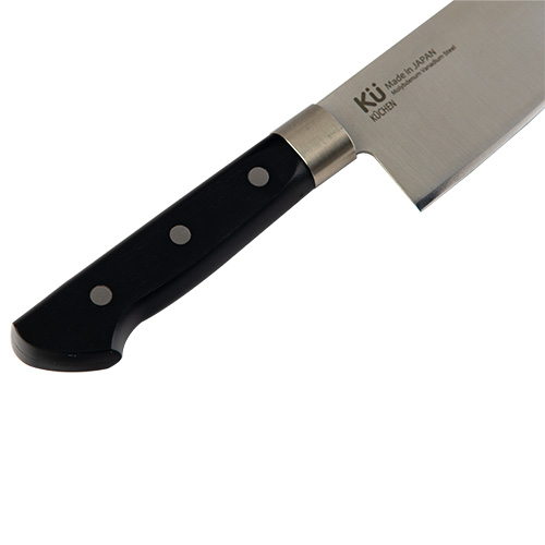 Dao Santoku KUCHEN có thiết kế đẹp, sang trọng. Phần lưỡi dao có khả năng duy trì độ sắc bén và sáng bóng sau thời gian dài sử dụng. Lưỡi dao làm bằng thép Molybdenum không gỉ, độ cứng lên đến 59HRC, nhập khẩu nguyên liệu và sản xuất theo công nghệ Nhật Bản, mang đến khả năng chống ăn mòn cũng như cho phép bạn cắt thái chính xác, sắc nét trên mọi loại thực phẩm.