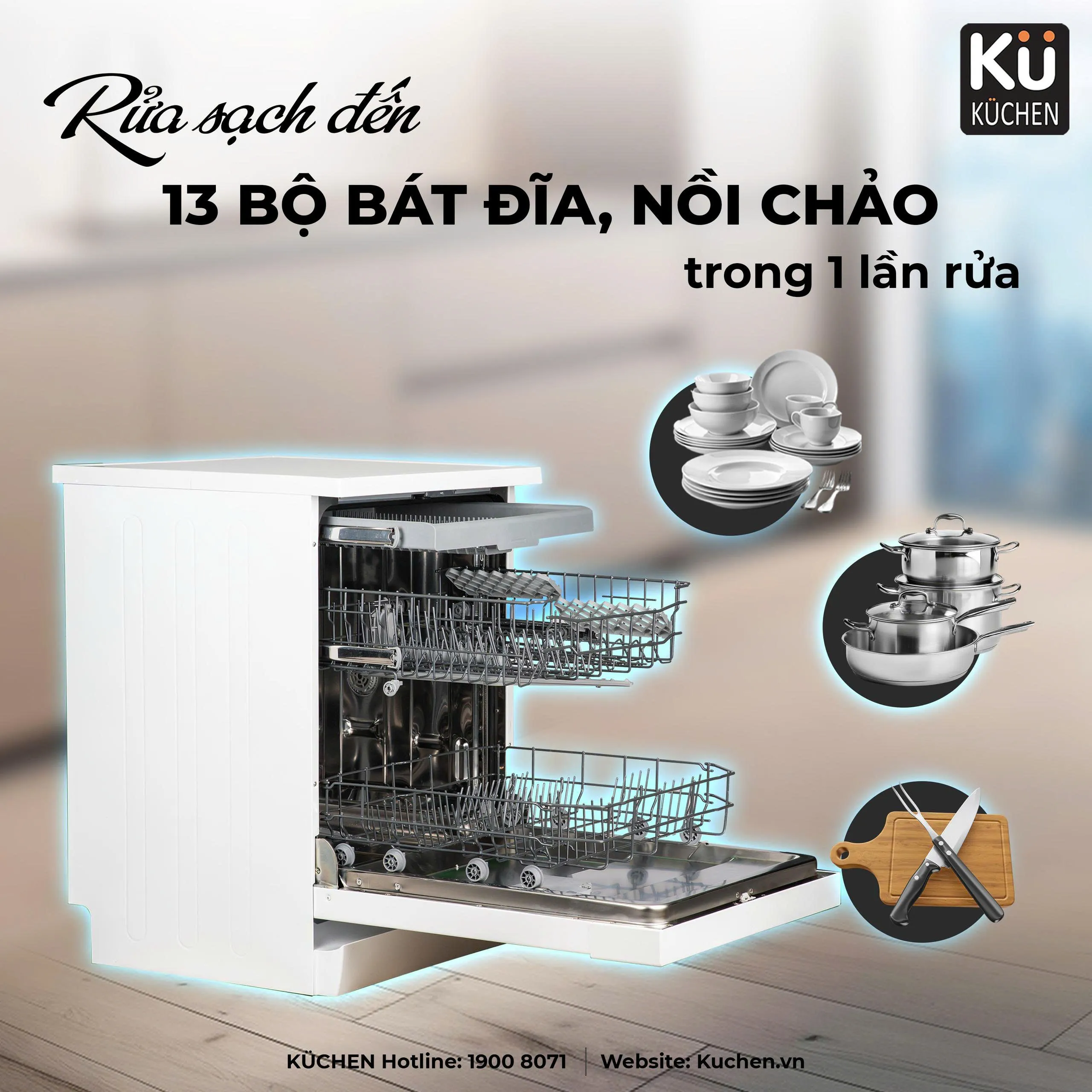 KUPP80356 với dung tích full size có thể rửa lên đến 13 bộ chén đĩa, cùng với xoong nồi, thớt chặt, chảo rán… Cùng với đó là 3 tầng rửa có thể điều chỉnh kích thước, đem đến sự tiện lợi và thoải mái cho người sử dụng. Bảng điều khiển điện tử, màn hình full chức năng với phím bấm to và rõ, bố trí thông minh và hợp lý, tạo cảm giác thân thiện cho bất cứ ai cũng có thể dễ dàng sử dụng và điều khiển.